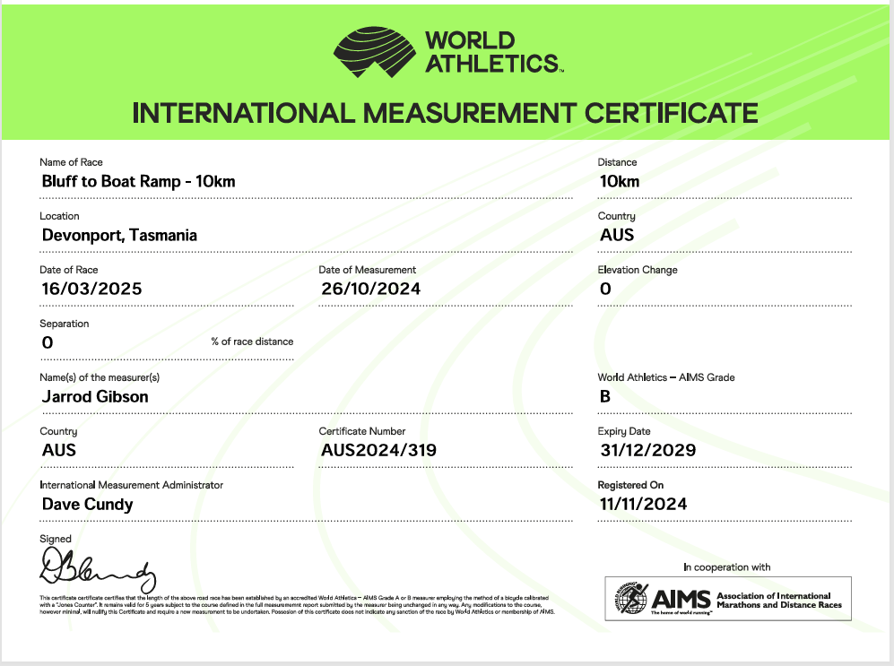 We’re proud to announce that the Bluff 2 Boat Ramp 10km is a World Athletics Certified Course and part of the World Athletics Rankings.