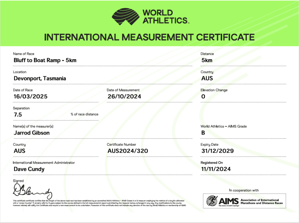 * The Bluff to Boat Ramp courses have now been measured and adjusted to WA/AIMS standards.